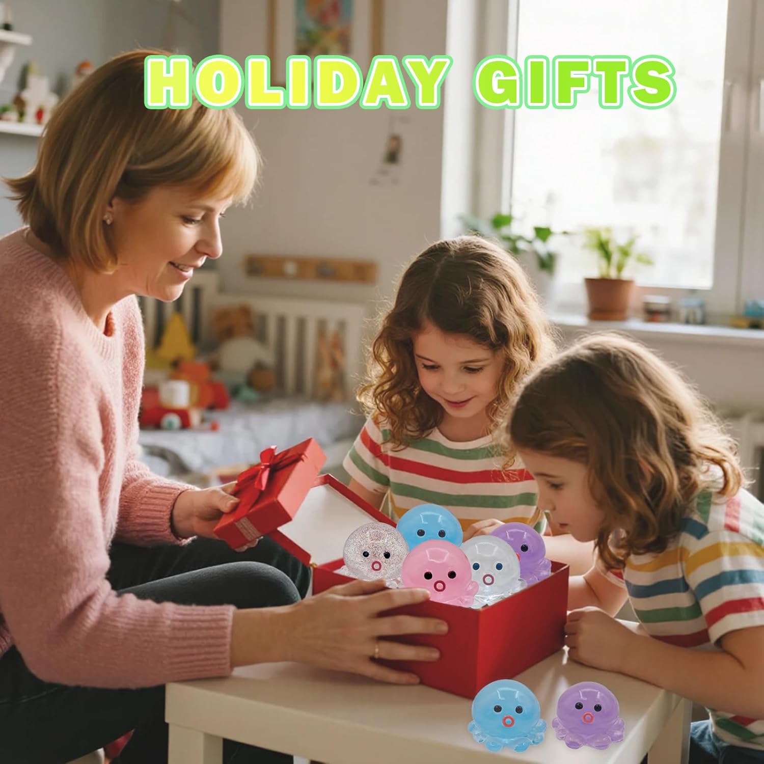 - Hypnotic Clear Taba Squishy Magic:The clear taba squishy and glittery translucent octopuses add extra whimsy! Watch bubbles and sparkles swirl inside the transparent bodies as you press, creating a soothing ASMR-like visual escape.