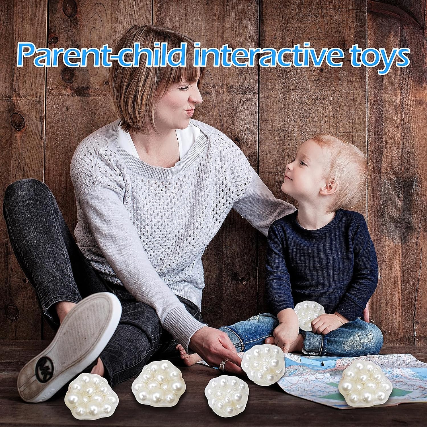 Handmade Grape Noisy Squishy Ball for Adults, White Beads Sensory Fidget Toys for Kids Stress Relieve